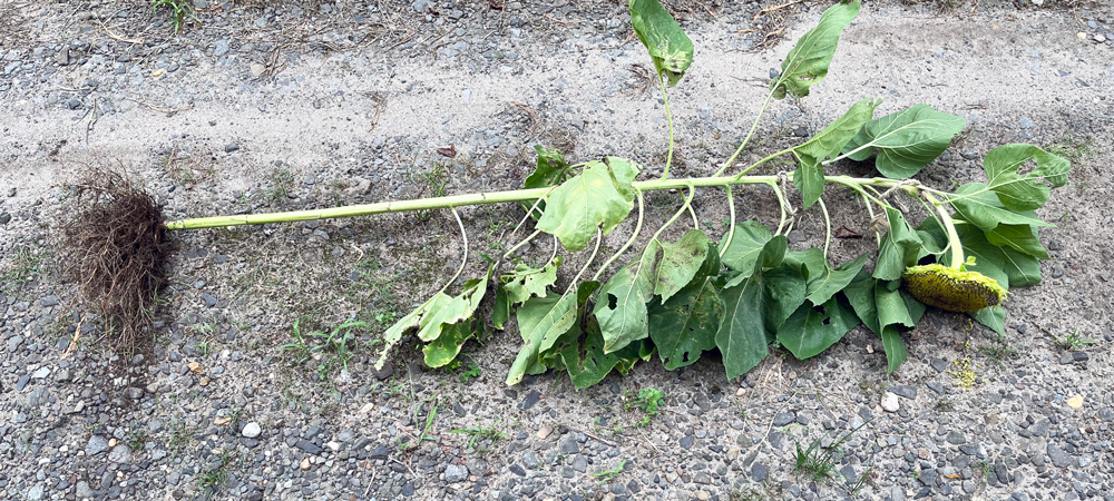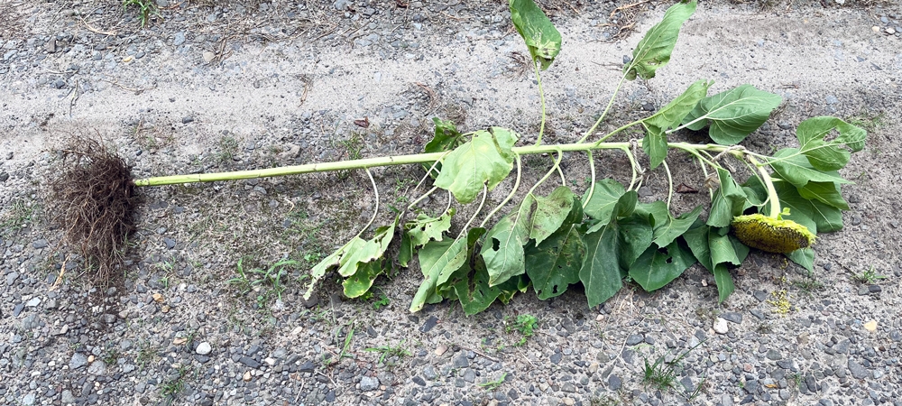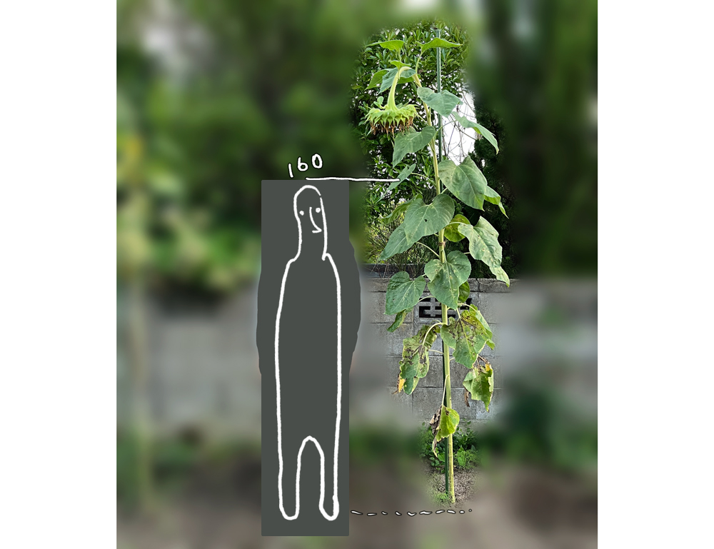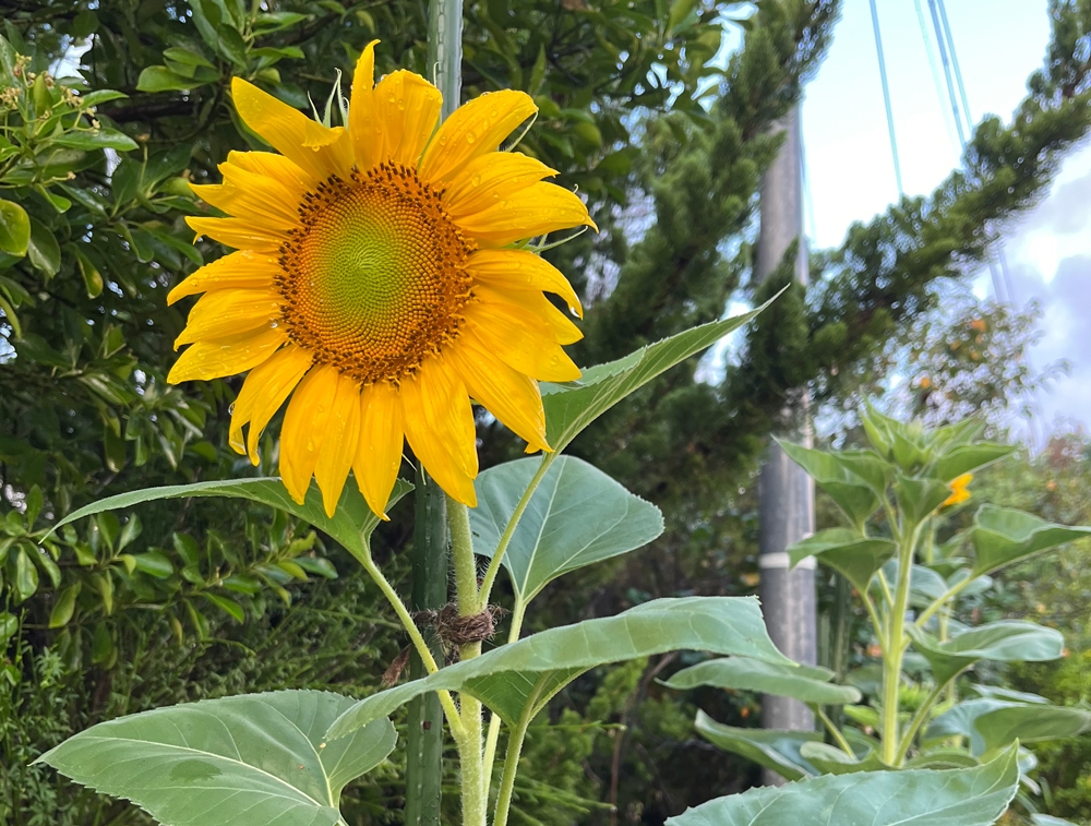 ひまわりにとって過ごしやすい季節のはずが、あまりの猛暑にぐったりしているようにも見えました。また、例年のことですがこの異常気象により、雨が降ったら一日中土砂降りという極端な降水量で、ひまわりの発育的にあまりよろしくない日が続きました。