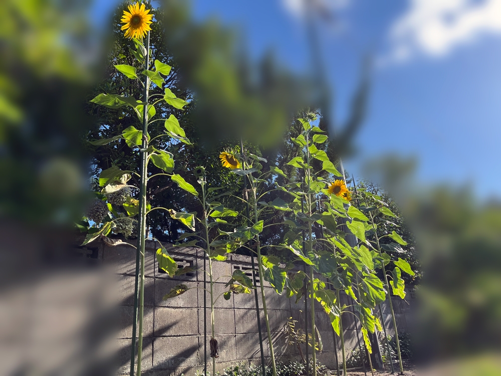 夏の風物詩としてひまわりを育てるのが毎年の楽しみになっています。来年は今年のひまわりから収穫したタネを植えてみようと思っています。