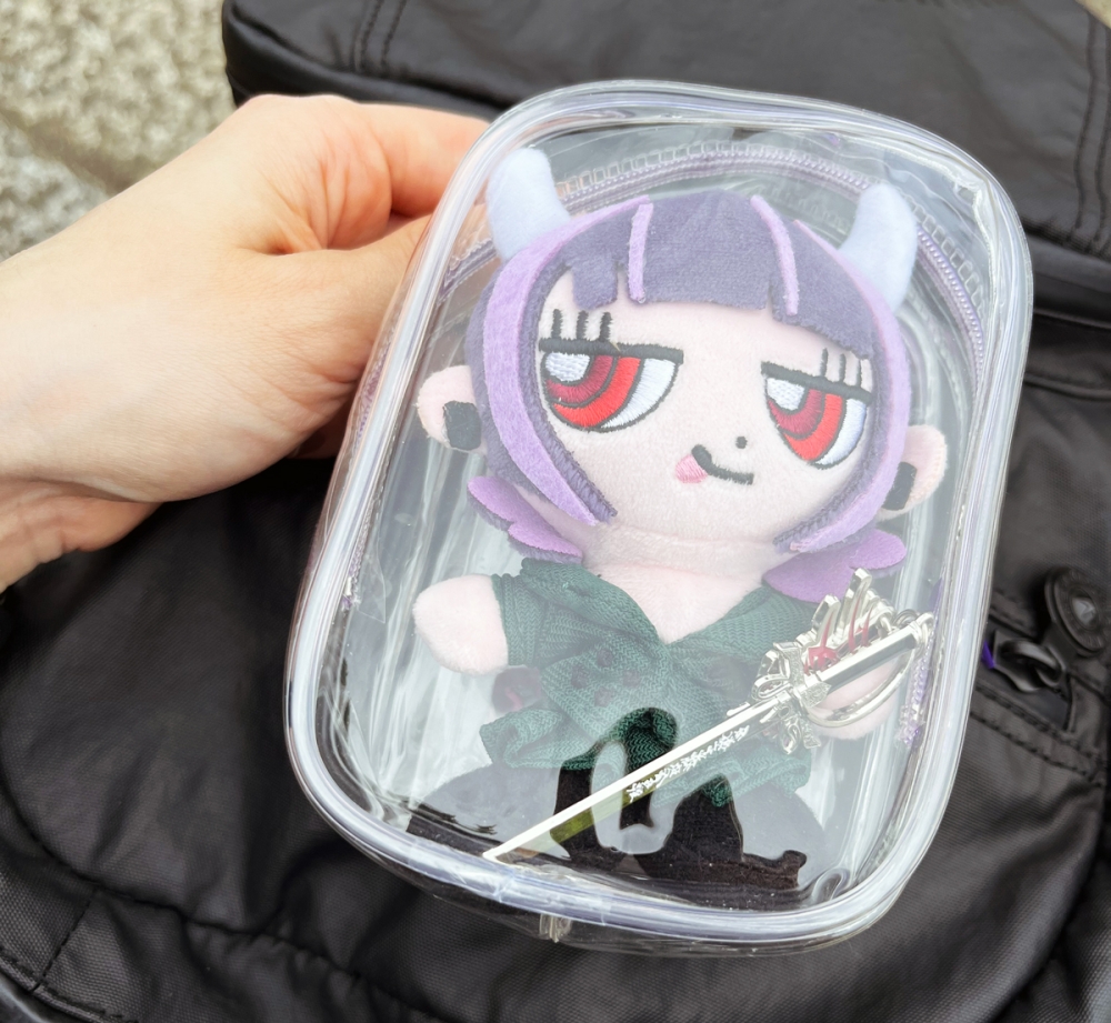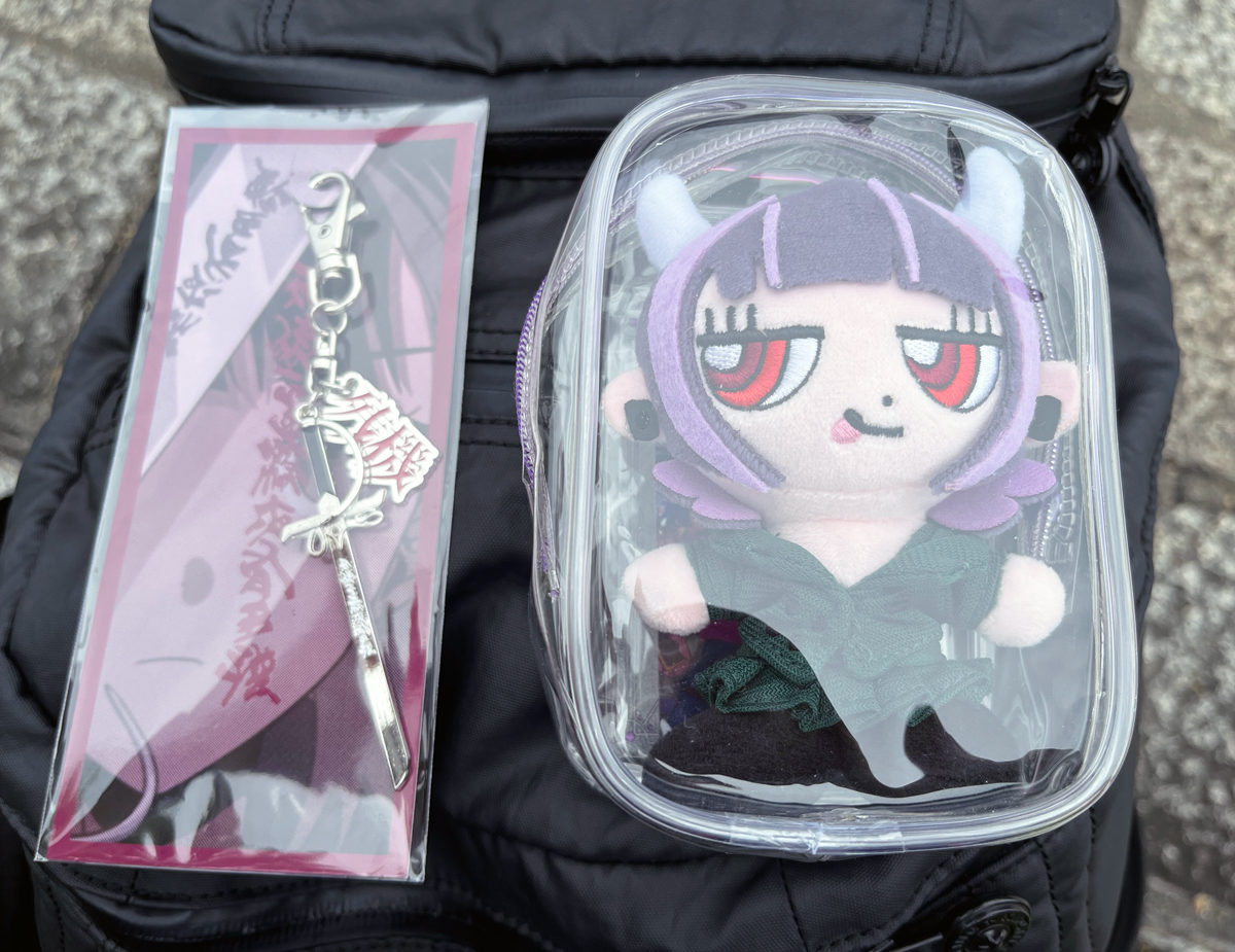 そう。私は前回のライブで学びました。グッズは事前にネットで頼んでおくこと。そしてライブ会場で受け取ること。この残機剣のキーチェーンがずっと欲しかったんです。いつも売り切れで。前のライブで買った残機のニラぬいに持たせる。