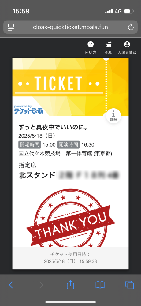2025年5月18日、ライブ当日。アリーナツアー最終日(日曜日)の代々木。